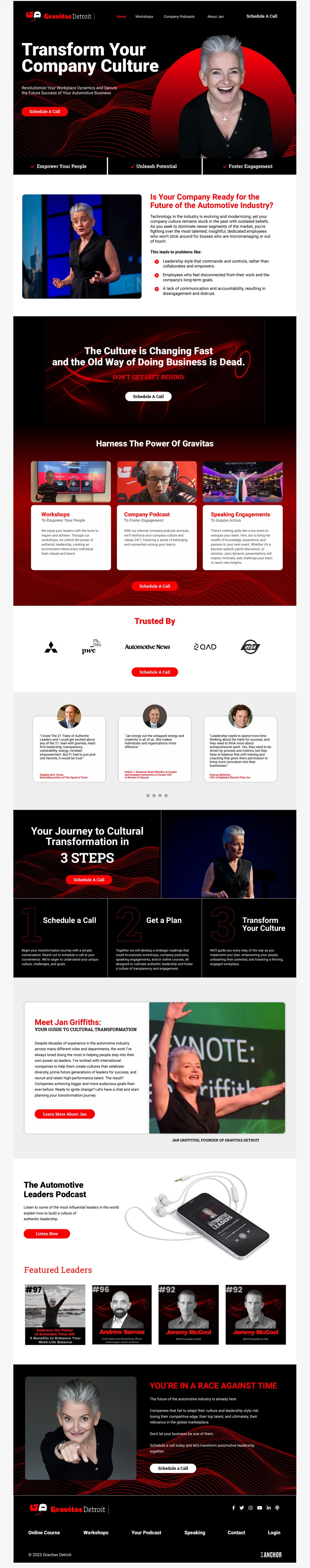 After spending decades in the automotive industry, Jan Griffiths founded Gravitas Detroit. Her company focuses on bringing authentic leadership skills to the automotive industry through hands-on seminars for leaders and creating internal company podcasts for companies.